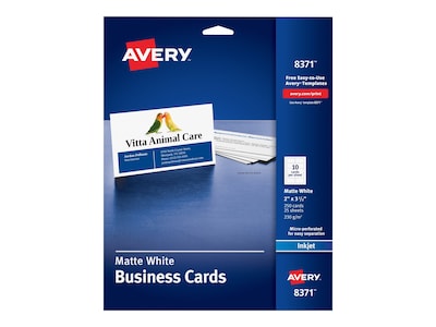For inkjet printers, 2 x 3½ 18871. Avery 2 x 3.5 business cards, sure feed technology, for inkjet printers, 250 cards (8371), white. Amazon's choice for 8371 avery business cards. 4.7 out of 5 stars 4,076. Avery 2 x 3.5 business cards, sure feed technology, for inkjet printers, 250 cards (8371), white.